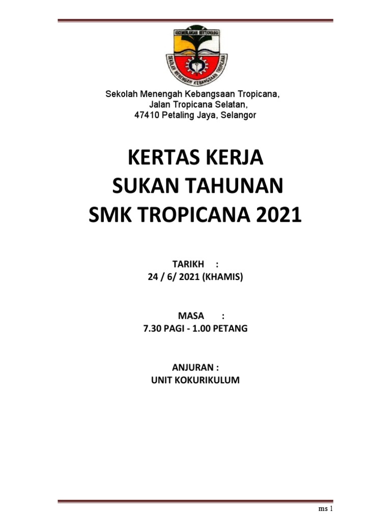 Kertas Kerja Sukan Tahunan Sekolah Pdf